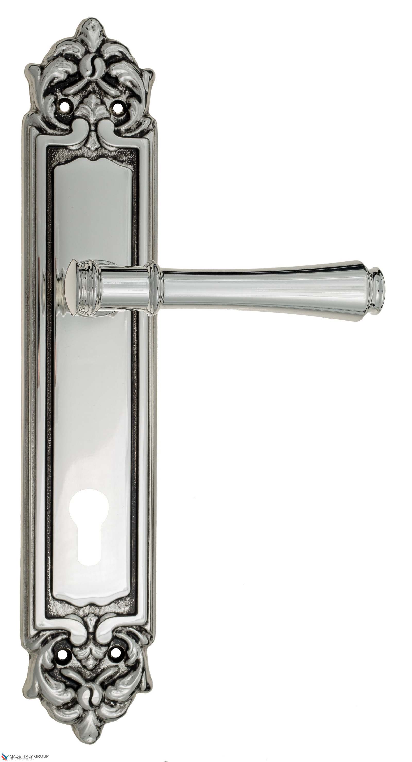 Дверная ручка Venezia CALLISTO CYL на планке PL96 натуральное серебро + черный