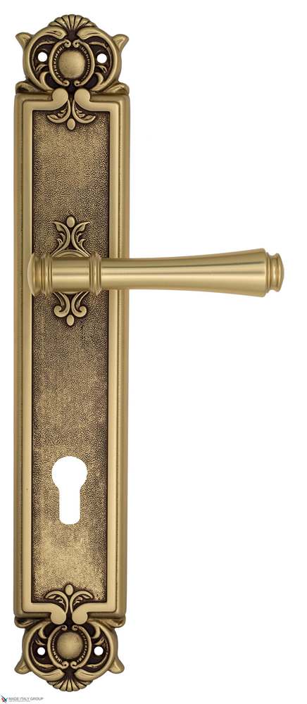 Дверная ручка Venezia CALLISTO CYL на планке PL97 французское золото + коричневый