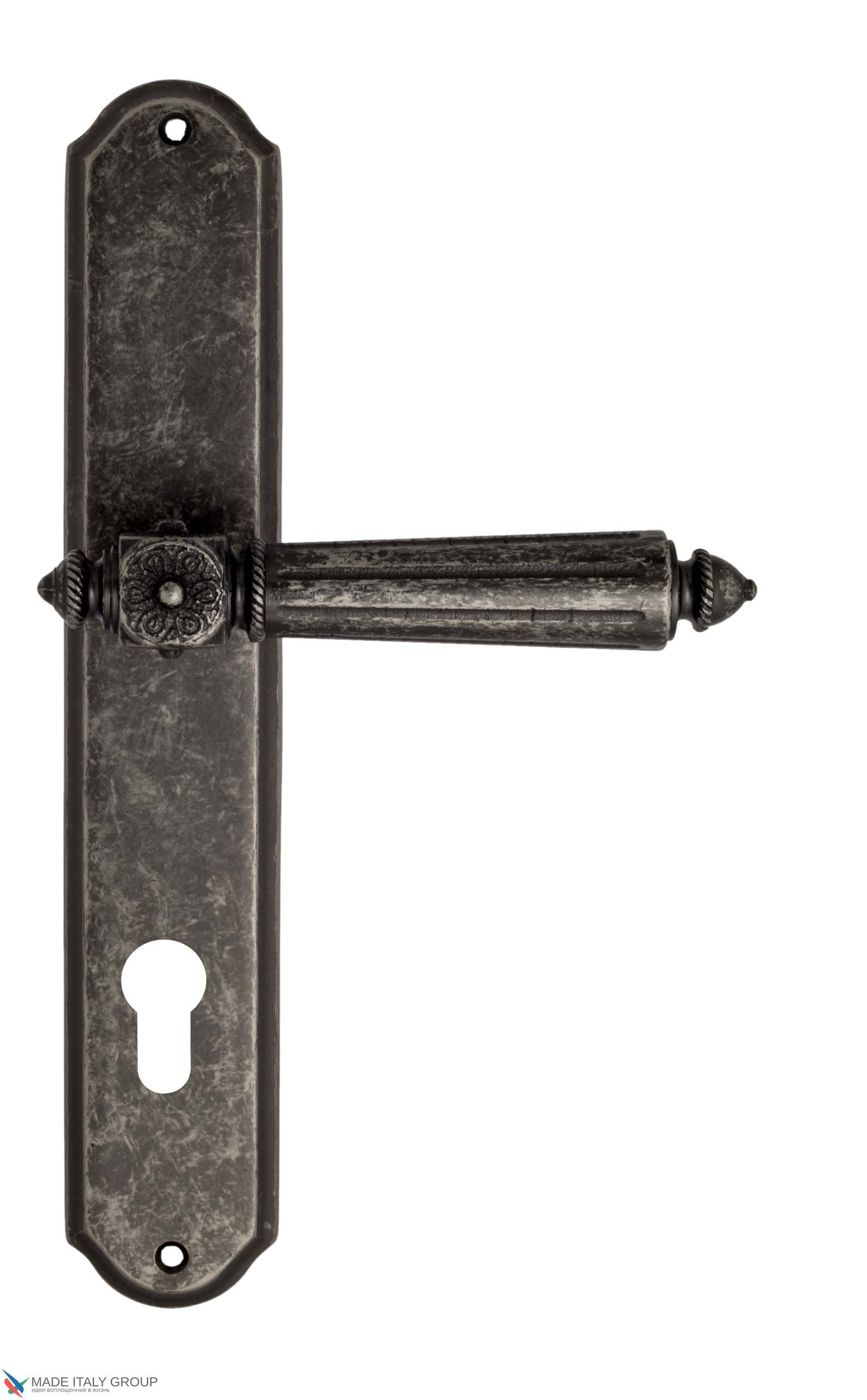 Дверная ручка Venezia CASTELLO CYL на планке PL02 античное серебро