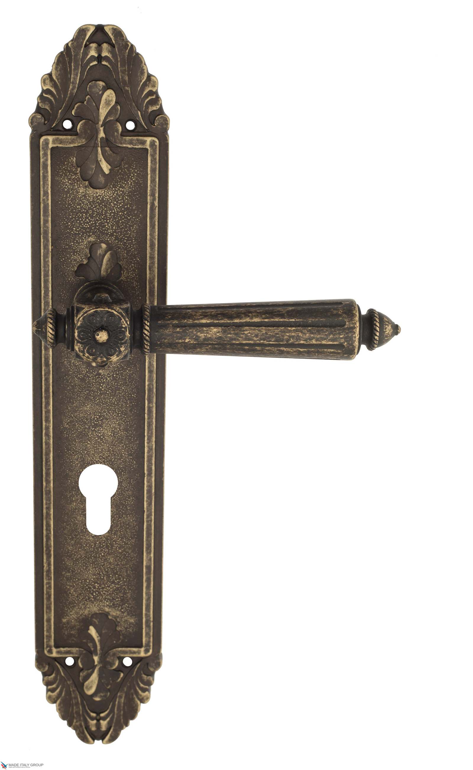 Дверная ручка Venezia CASTELLO CYL на планке PL90 античная бронза
