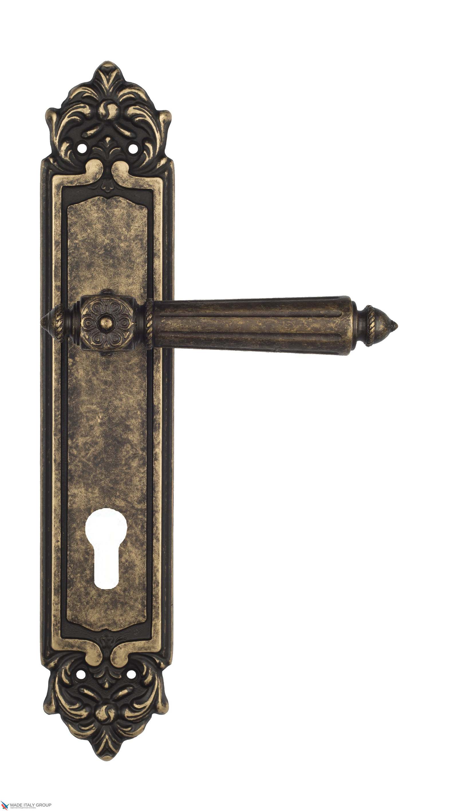 Дверная ручка Venezia CASTELLO CYL на планке PL96 античная бронза
