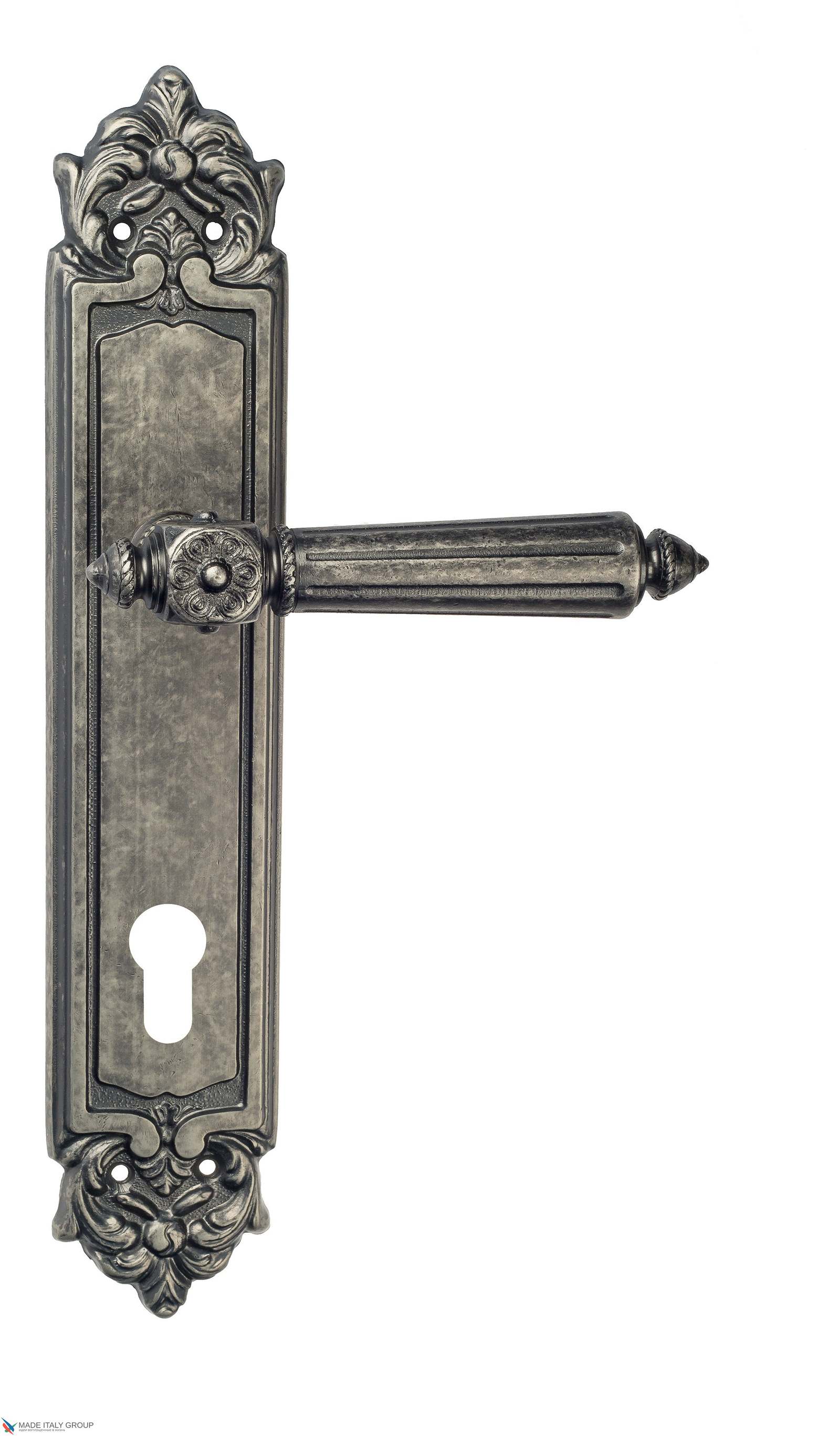 Дверная ручка Venezia CASTELLO CYL на планке PL96 античное серебро