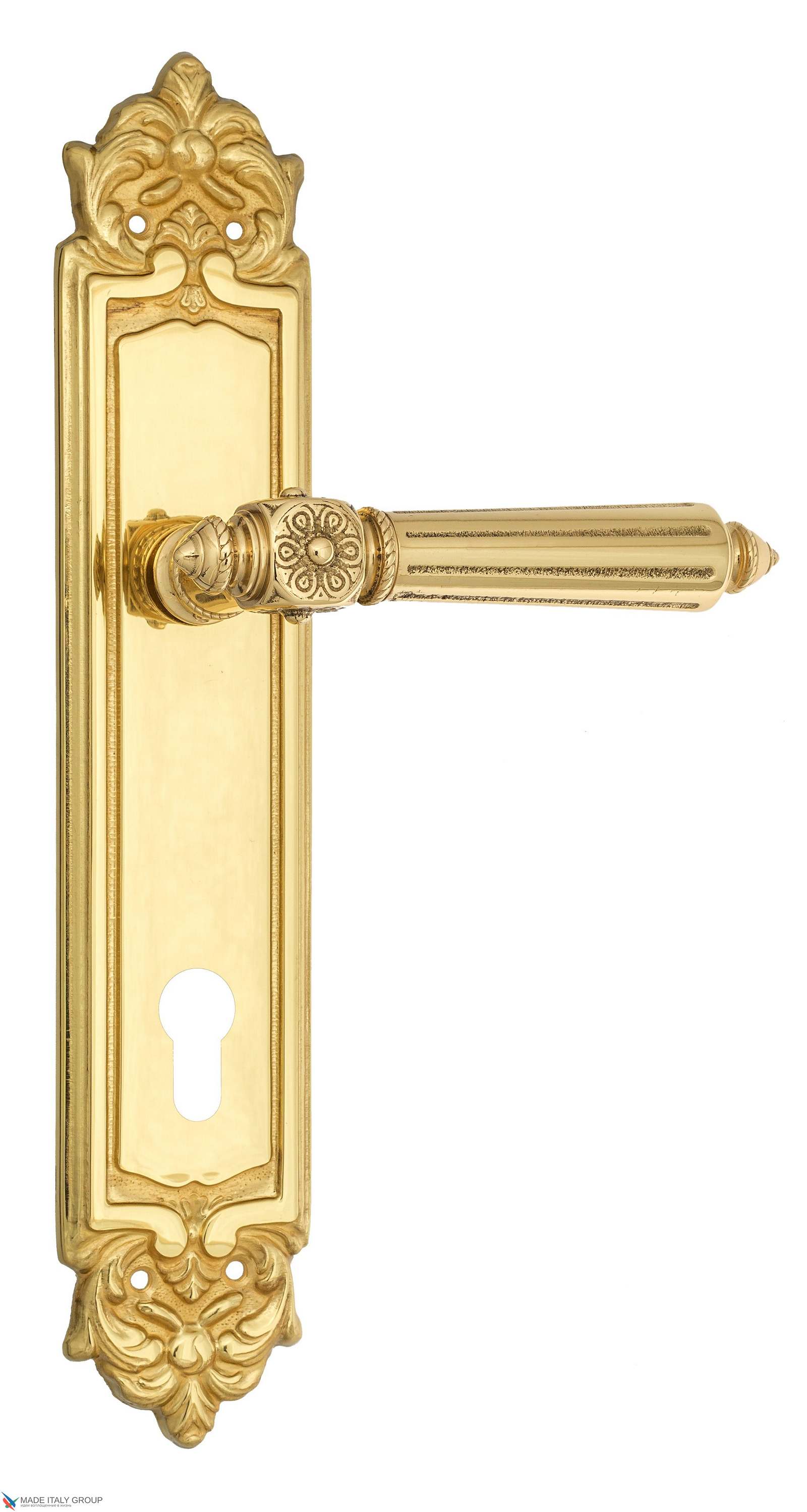 Дверная ручка Venezia CASTELLO CYL на планке PL96 полированная латунь