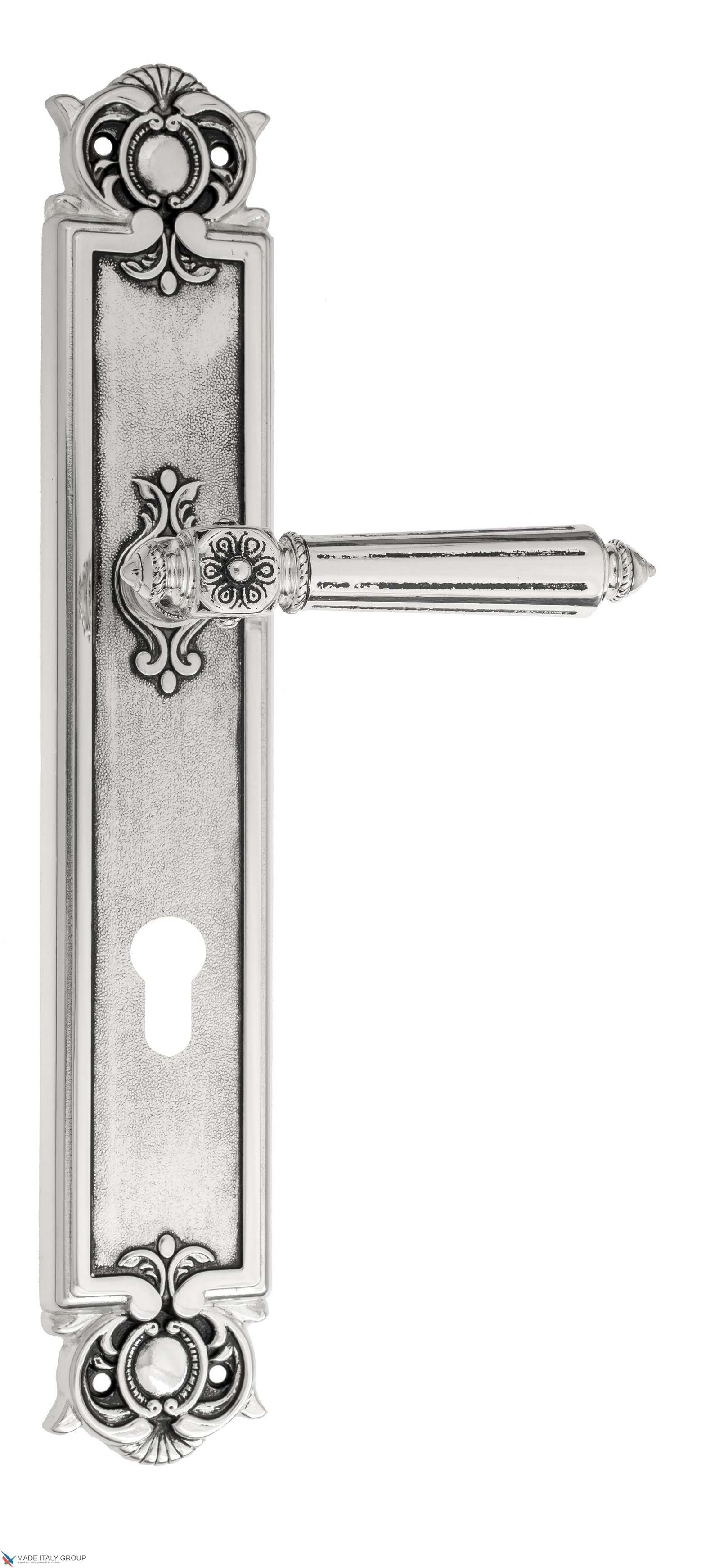 Дверная ручка Venezia CASTELLO CYL на планке PL97 натуральное серебро + черный
