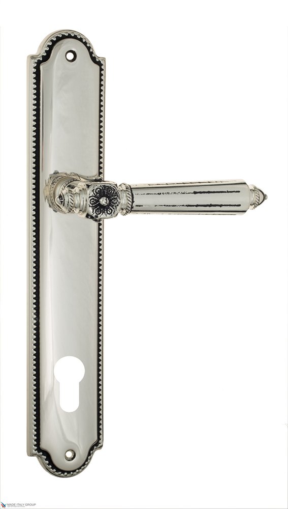 Дверная ручка Venezia CASTELLO CYL на планке PL98 натуральное серебро + черный