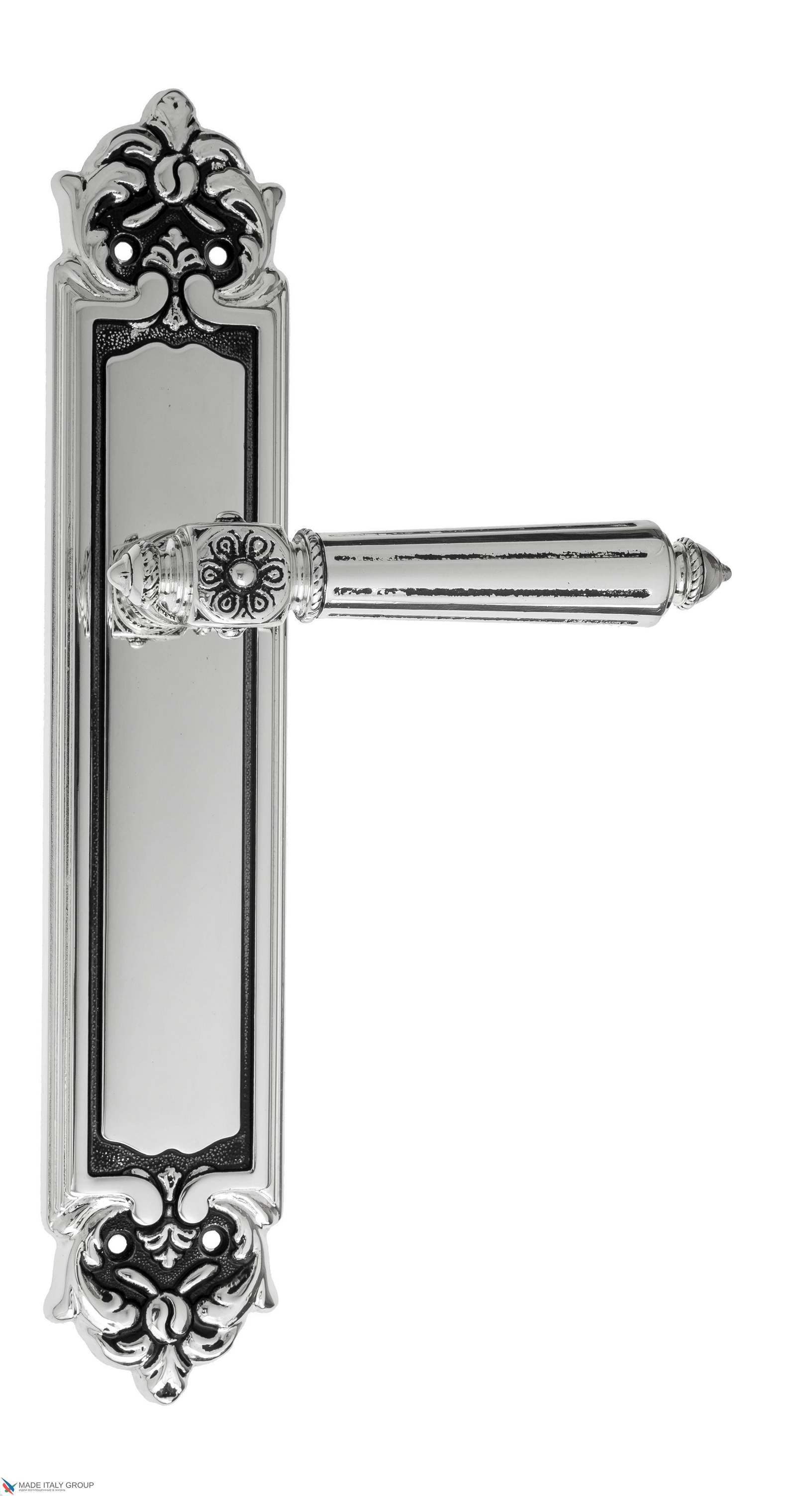 Дверная ручка Venezia CASTELLO на планке PL96 натуральное серебро + черный