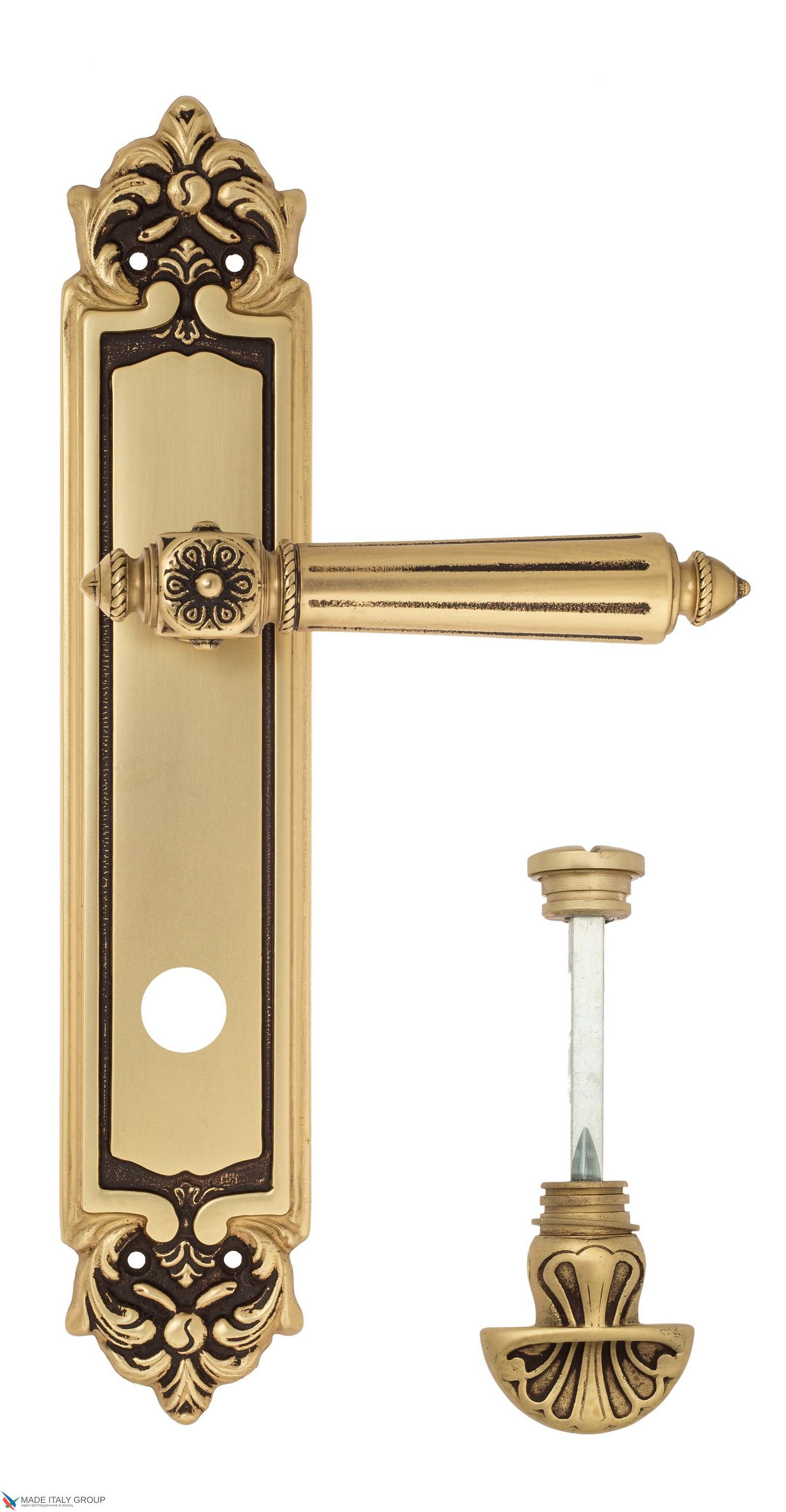 Дверная ручка Venezia CASTELLO WC-4 на планке PL96 французское золото + коричневый
