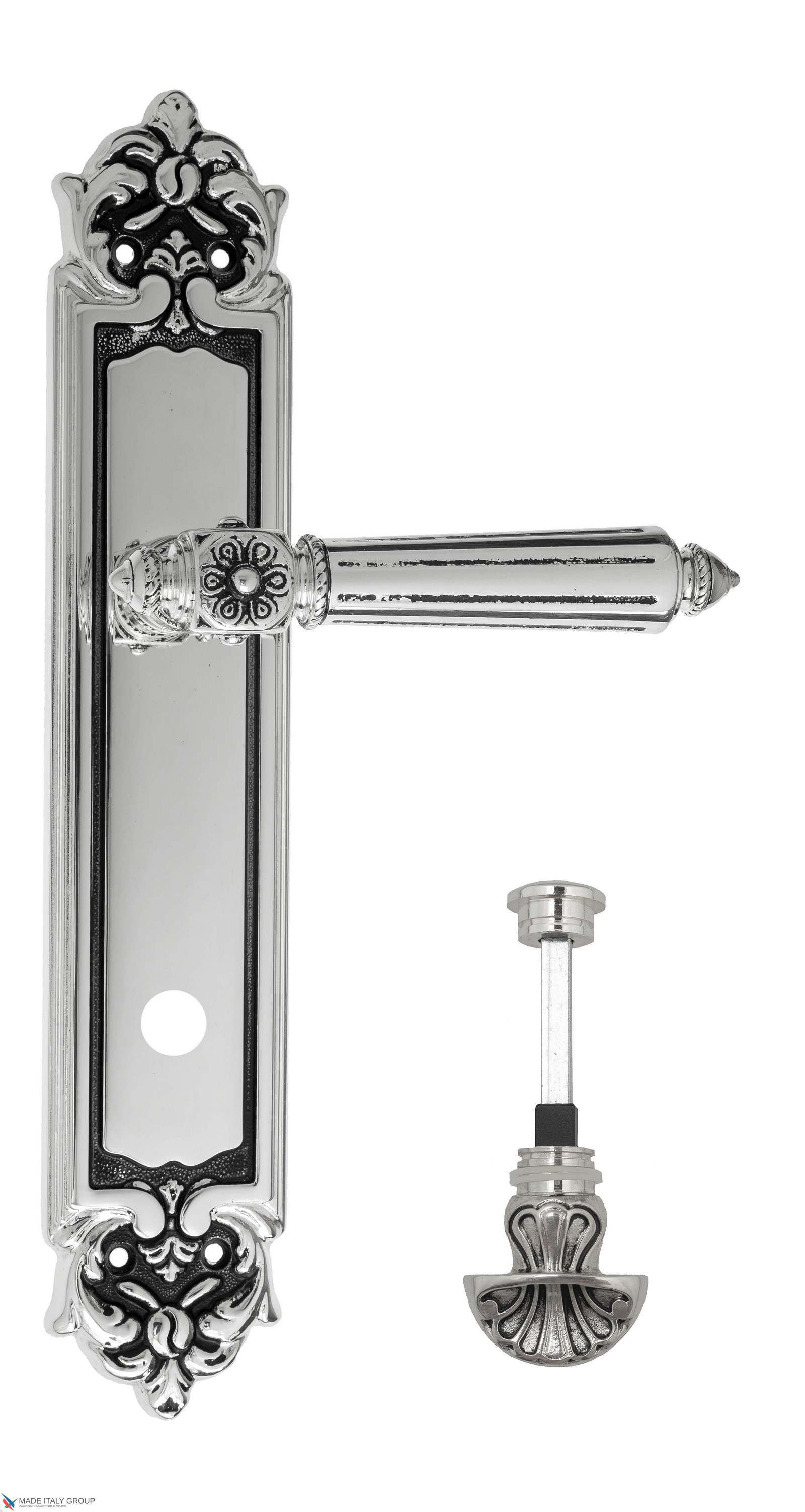 Дверная ручка Venezia CASTELLO WC-4 на планке PL96 натуральное серебро + черный