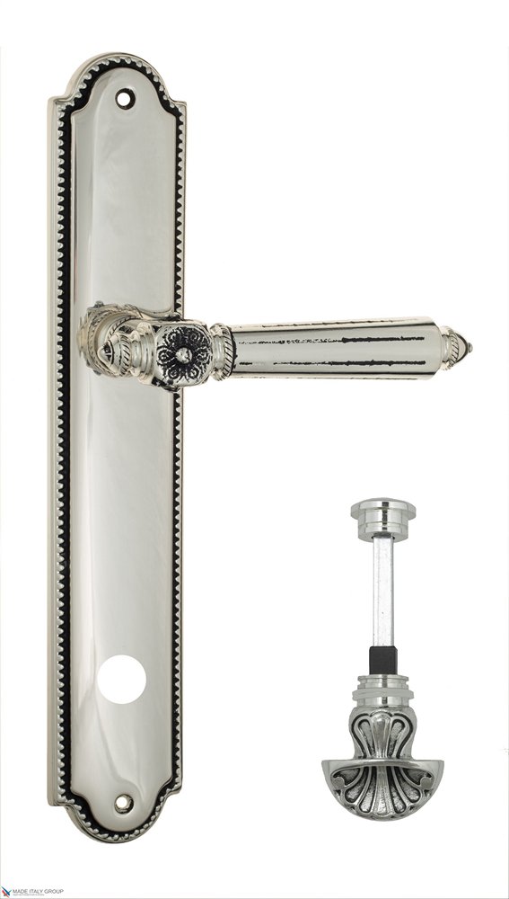 Дверная ручка Venezia CASTELLO WC-4 на планке PL98 натуральное серебро + черный