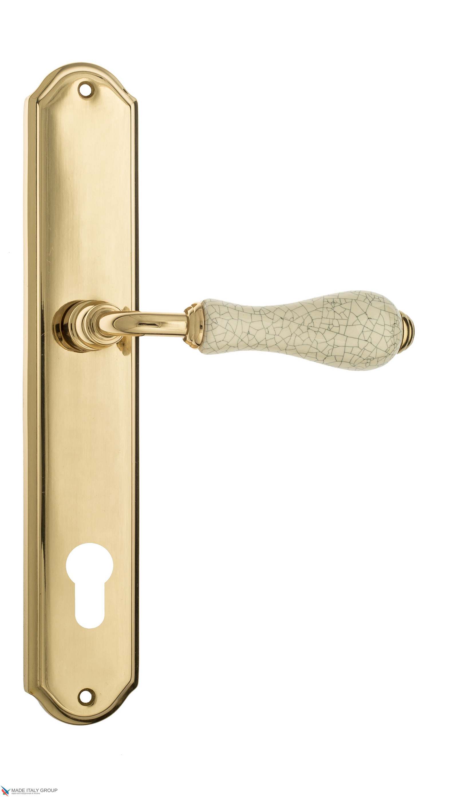 Дверная ручка Venezia COLOSSEO белая керамика паутинка CYL на планке PL02 полированная латунь