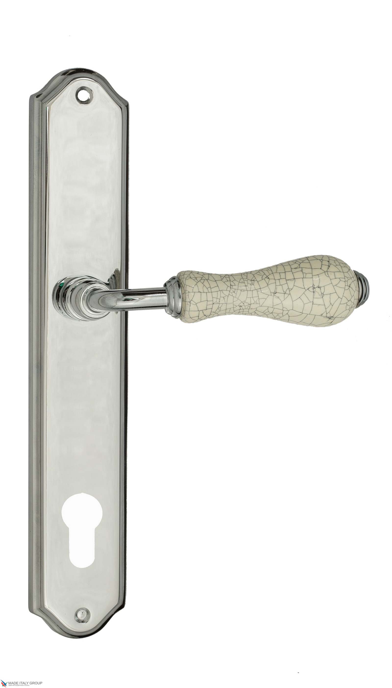 Дверная ручка Venezia COLOSSEO белая керамика паутинка CYL на планке PL02 полированный хром