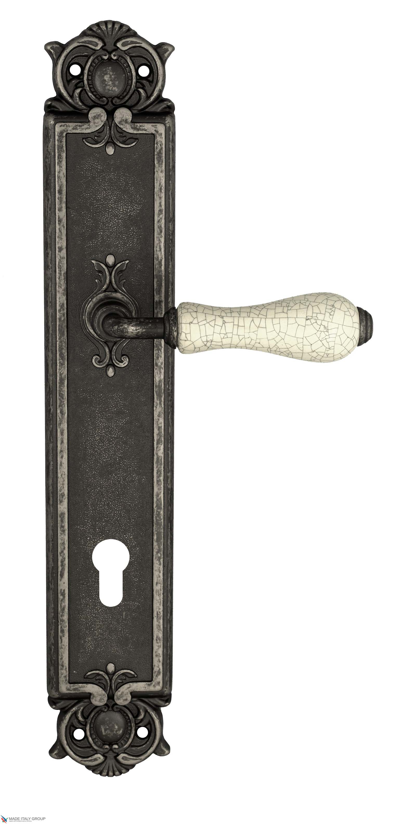 Дверная ручка Venezia COLOSSEO белая керамика паутинка CYL на планке PL97 античное серебро