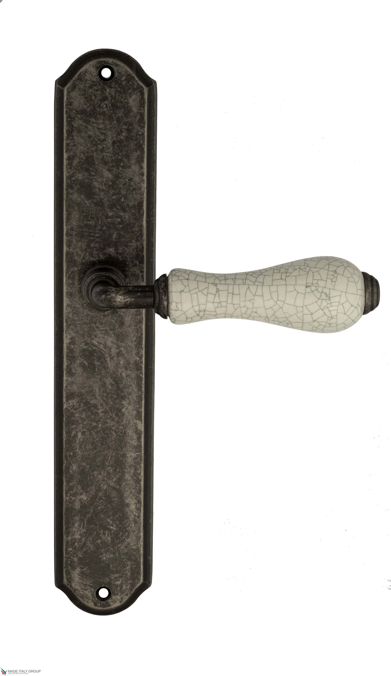 Дверная ручка Venezia COLOSSEO белая керамика паутинка на планке PL02 античное серебро