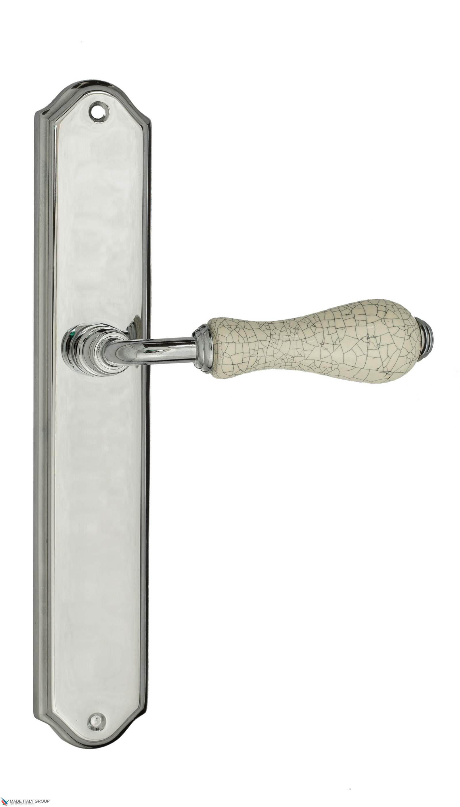 Дверная ручка Venezia COLOSSEO белая керамика паутинка на планке PL02 полированный хром