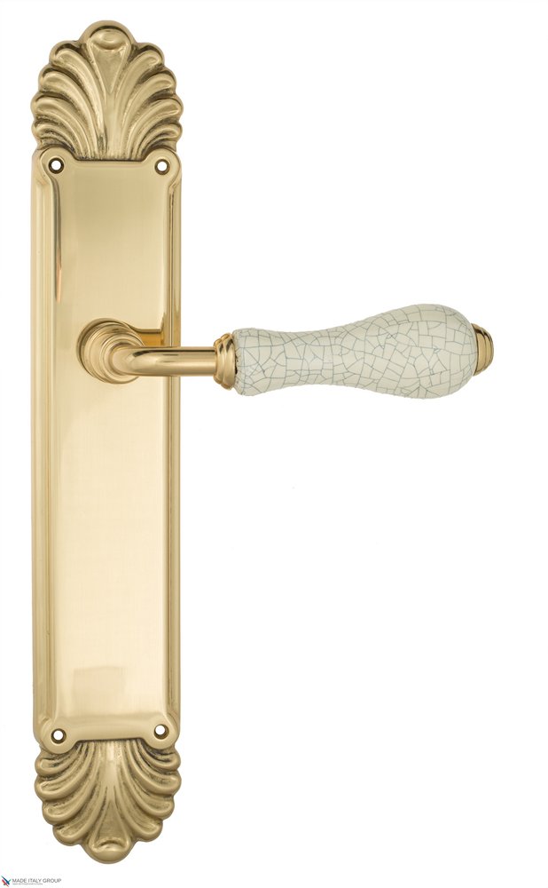 Дверная ручка Venezia COLOSSEO белая керамика паутинка на планке PL87 полированная латунь