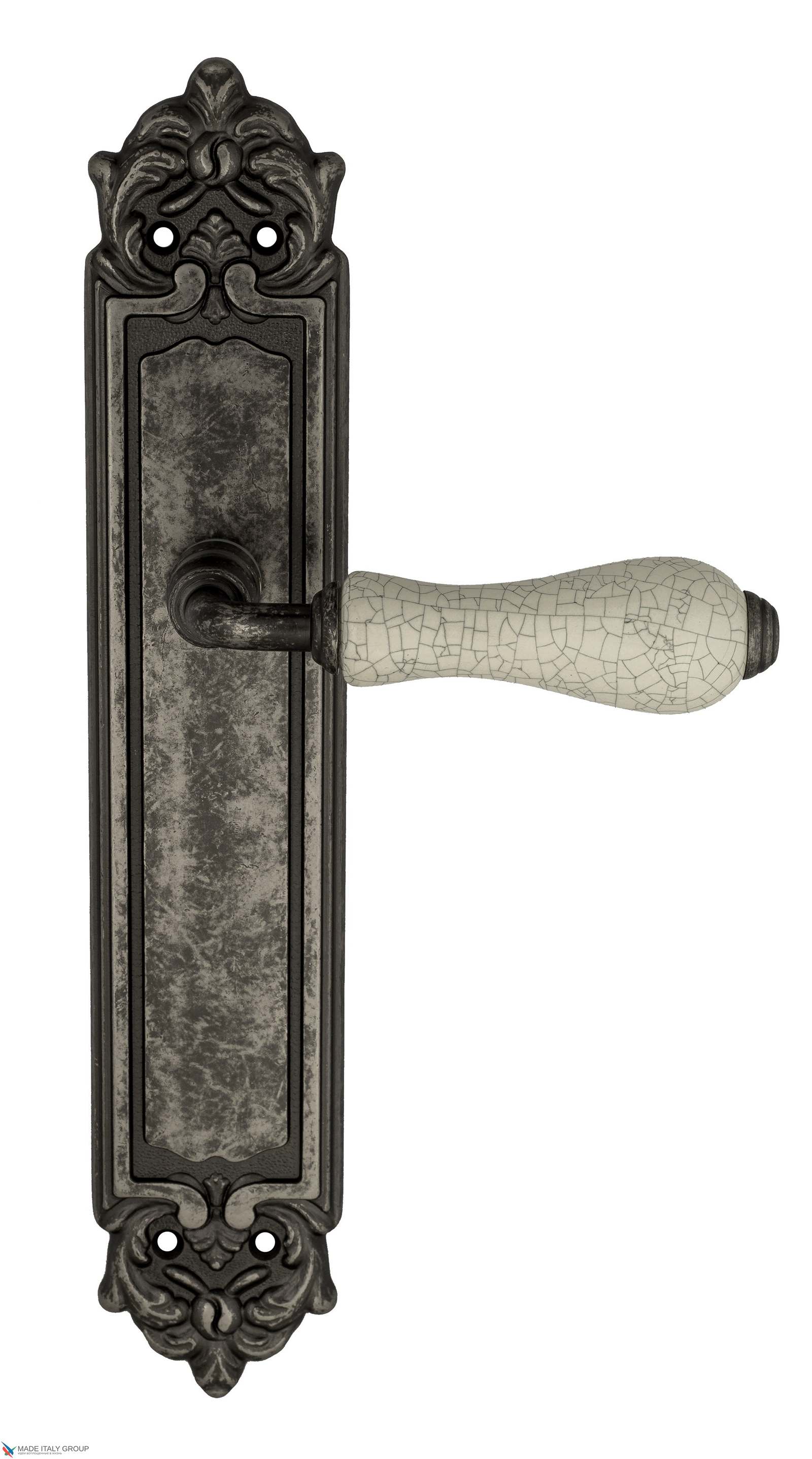 Дверная ручка Venezia COLOSSEO белая керамика паутинка на планке PL96 античное серебро