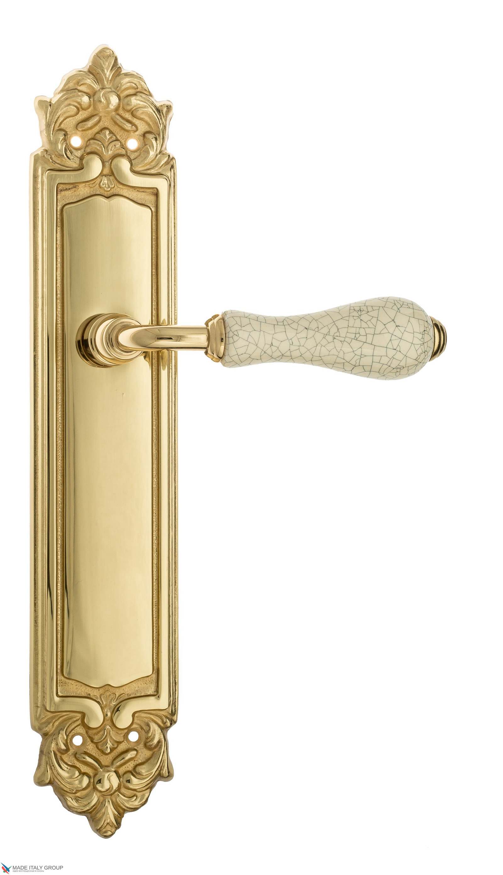 Дверная ручка Venezia COLOSSEO белая керамика паутинка на планке PL96 полированная латунь