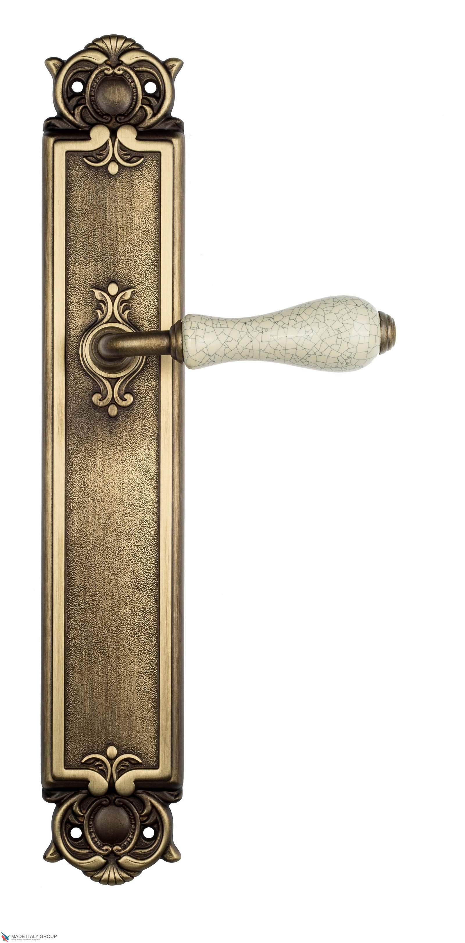 Дверная ручка Venezia COLOSSEO белая керамика паутинка на планке PL97 матовая бронза