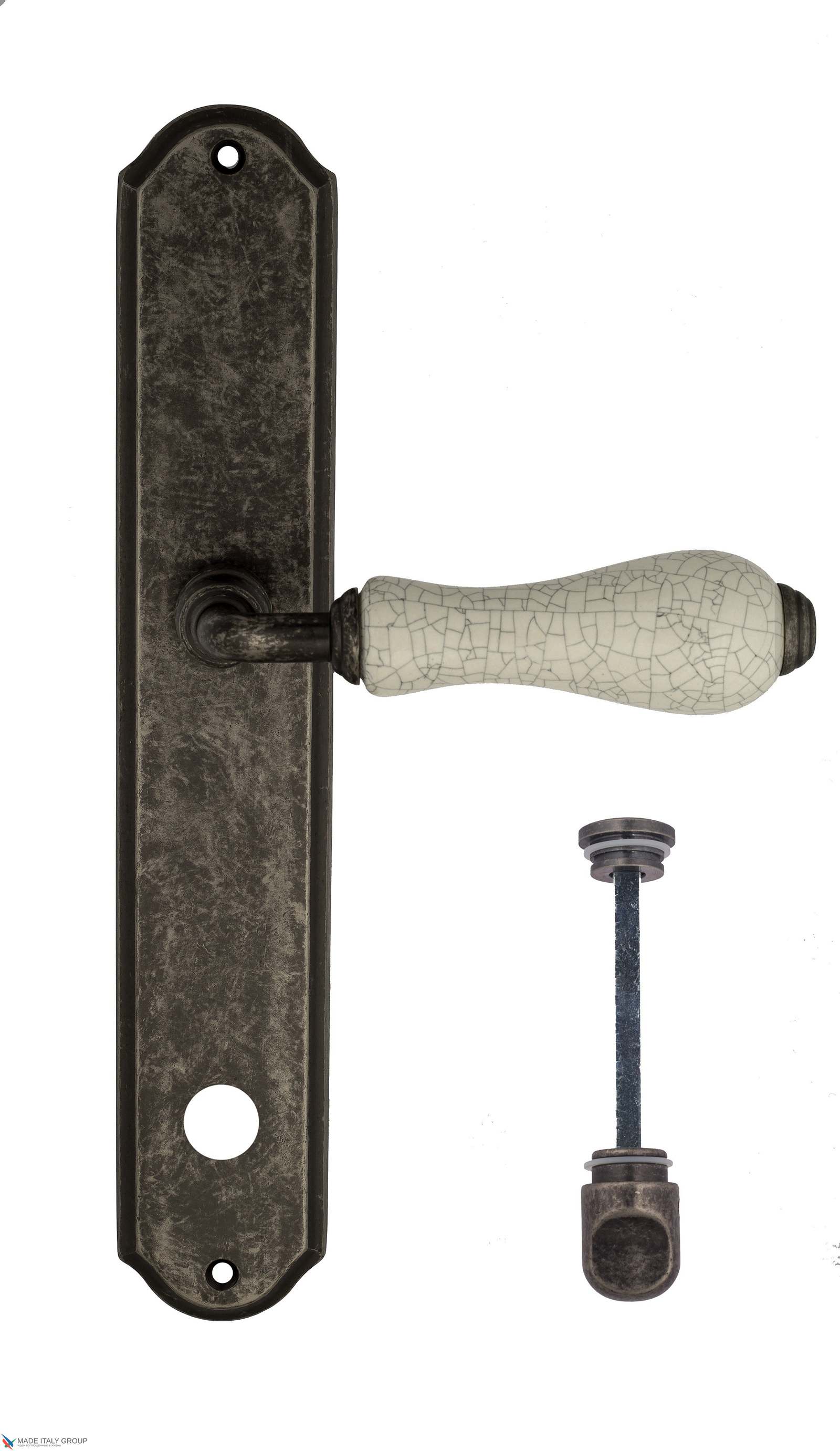 Дверная ручка Venezia COLOSSEO белая керамика паутинка WC-2 на планке PL02 античное серебро