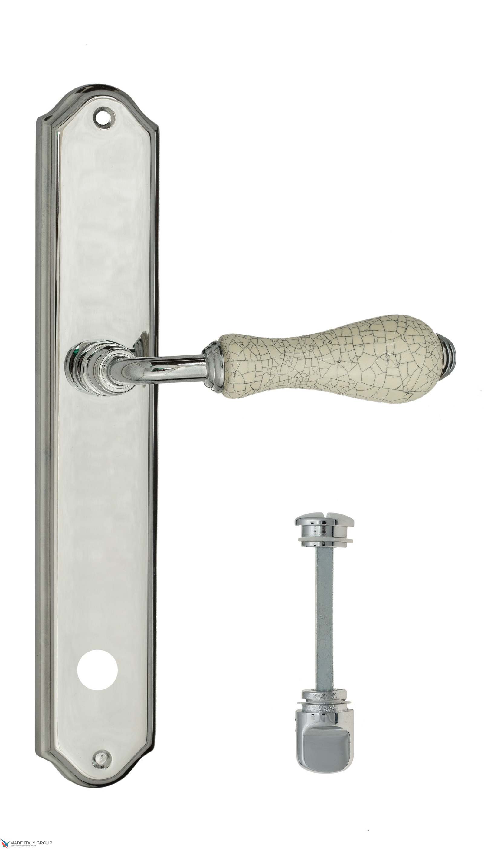 Дверная ручка Venezia COLOSSEO белая керамика паутинка WC-2 на планке PL02 полированный хром