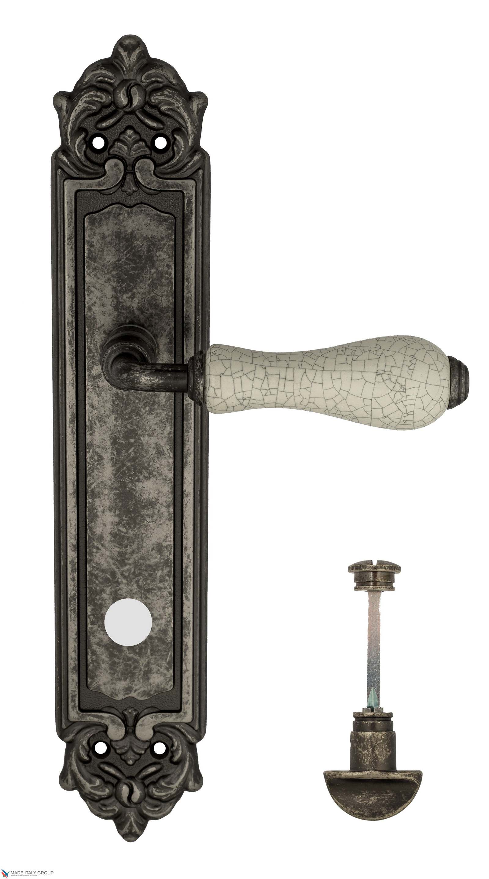 Дверная ручка Venezia COLOSSEO белая керамика паутинка WC-2 на планке PL96 античное серебро