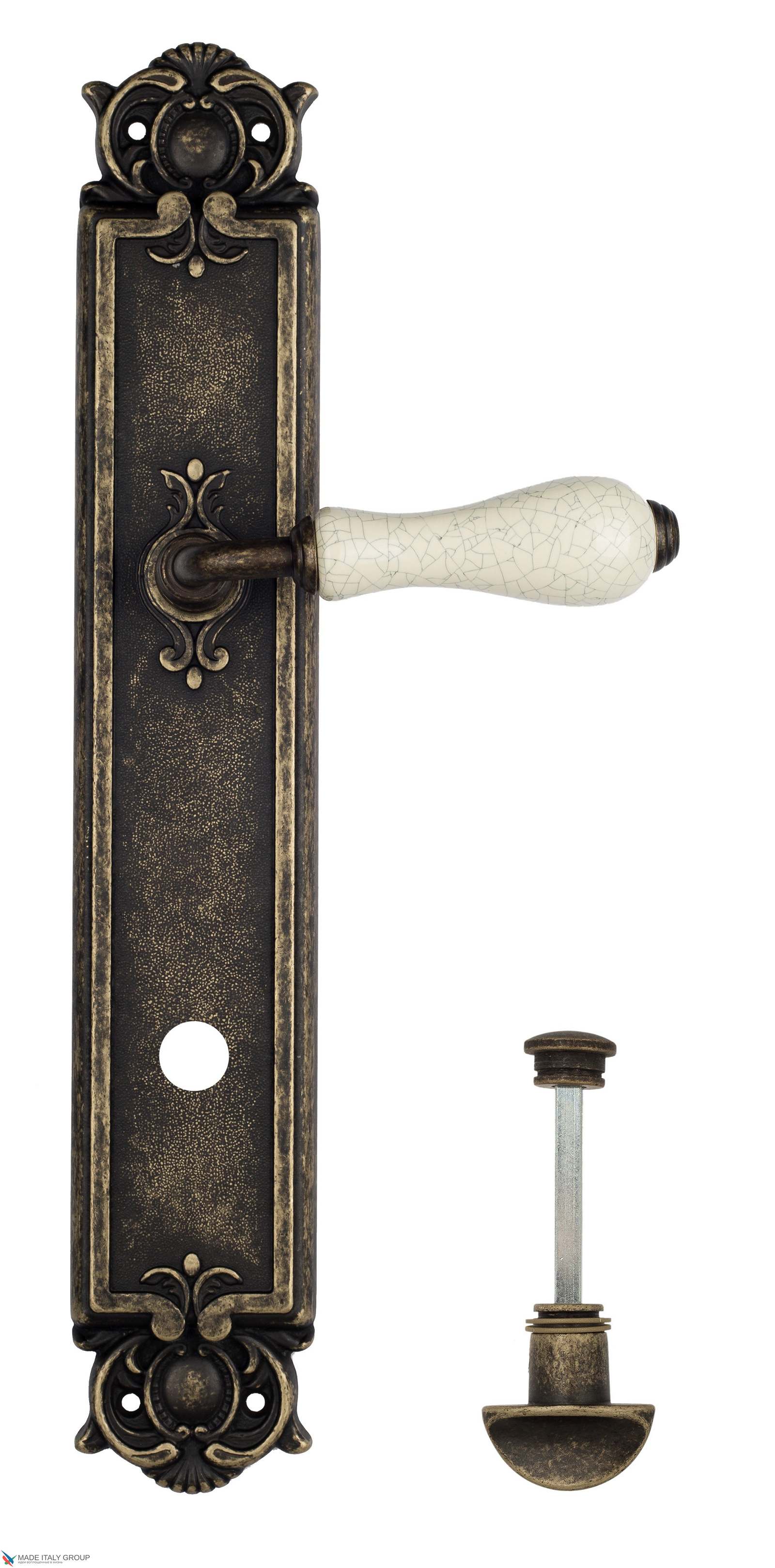 Дверная ручка Venezia COLOSSEO белая керамика паутинка WC-2 на планке PL97 античная бронза