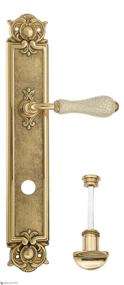 Дверная ручка Venezia COLOSSEO белая керамика паутинка WC-2 на планке PL97 полированная латунь