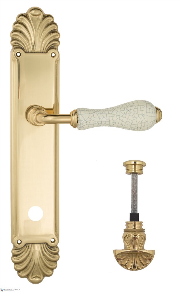Дверная ручка Venezia COLOSSEO белая керамика паутинка WC-4 на планке PL87 полированная латунь