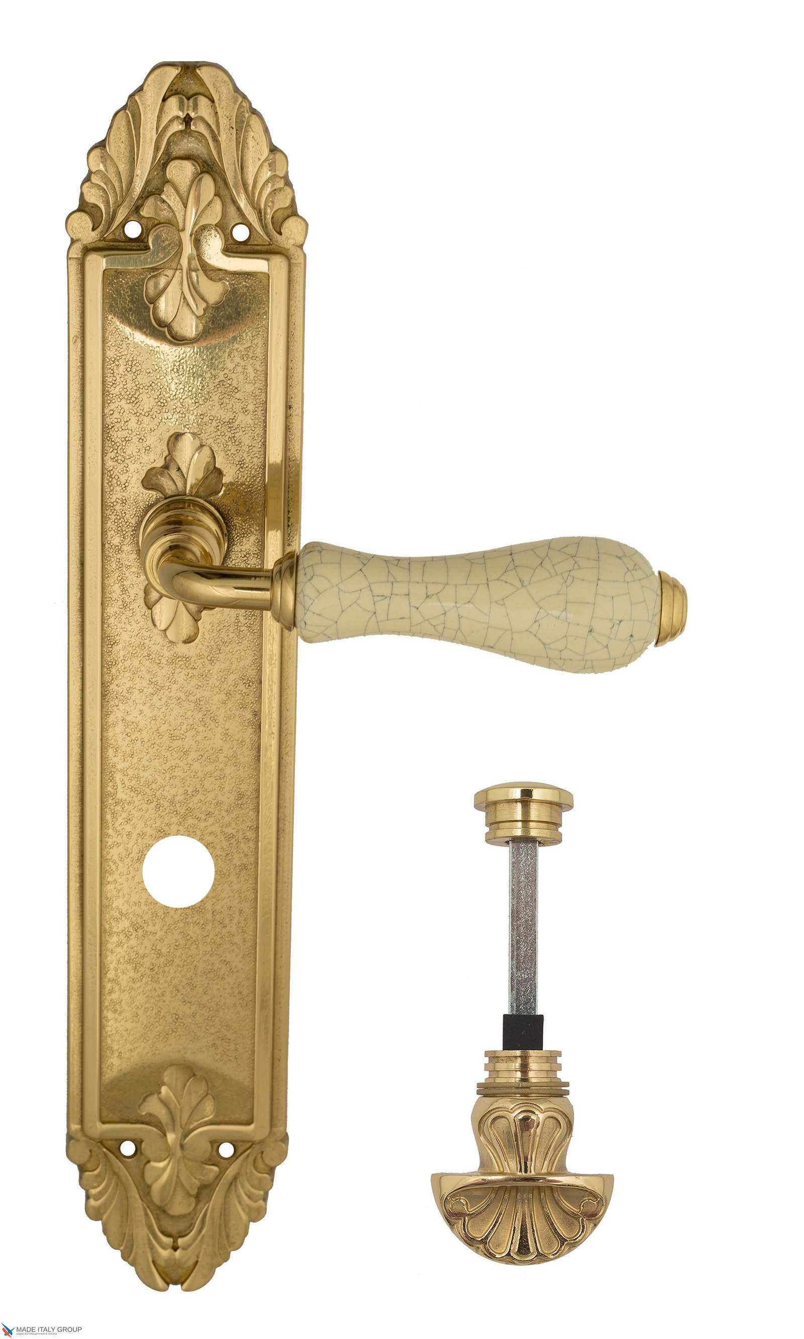 Дверная ручка Venezia COLOSSEO белая керамика паутинка WC-4 на планке PL90 полированная латунь