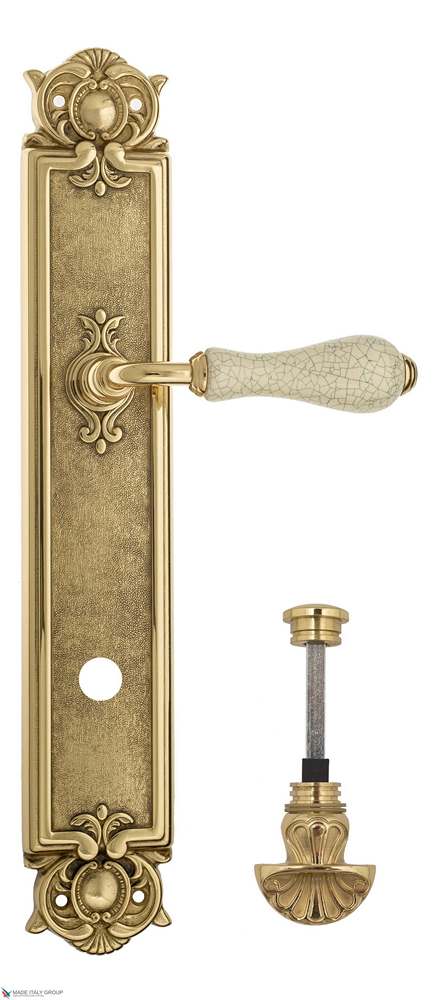 Дверная ручка Venezia COLOSSEO белая керамика паутинка WC-4 на планке PL97 полированная латунь