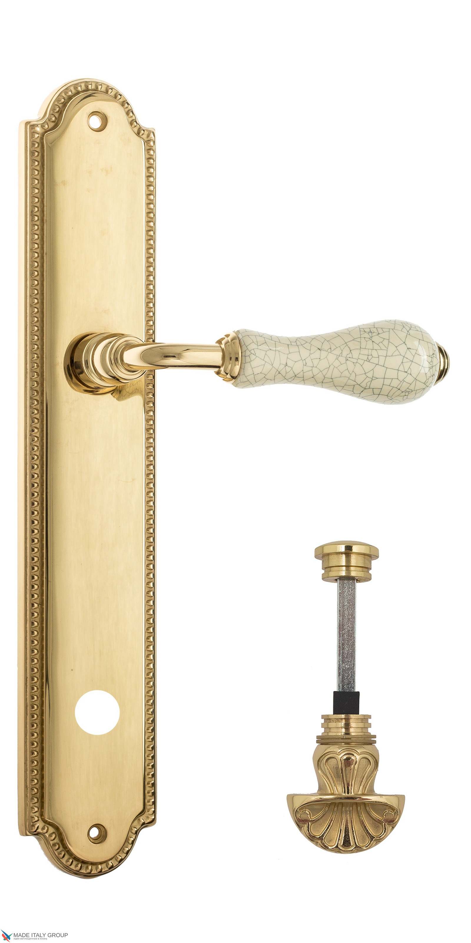 Дверная ручка Venezia COLOSSEO белая керамика паутинка WC-4 на планке PL98 полированная латунь