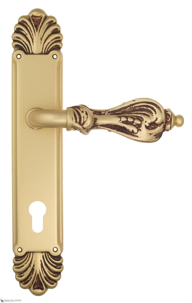 Дверная ручка Venezia FLORENCE CYL на планке PL87 французское золото + коричневый