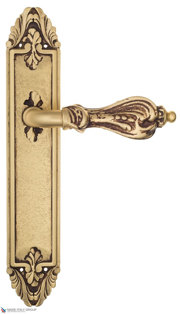 Дверная ручка Venezia FLORENCE на планке PL90 французское золото + коричневый