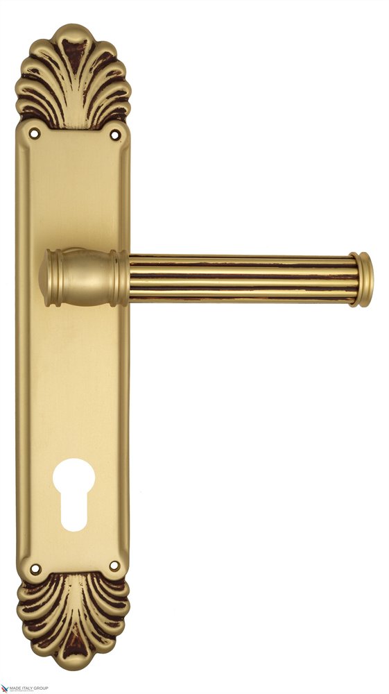 Дверная ручка Venezia IMPERO CYL на планке PL87 французcкое золото + коричневый