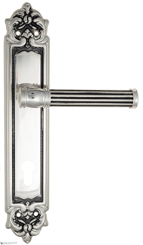 Дверная ручка Venezia IMPERO CYL на планке PL96 натуральное серебро + черный