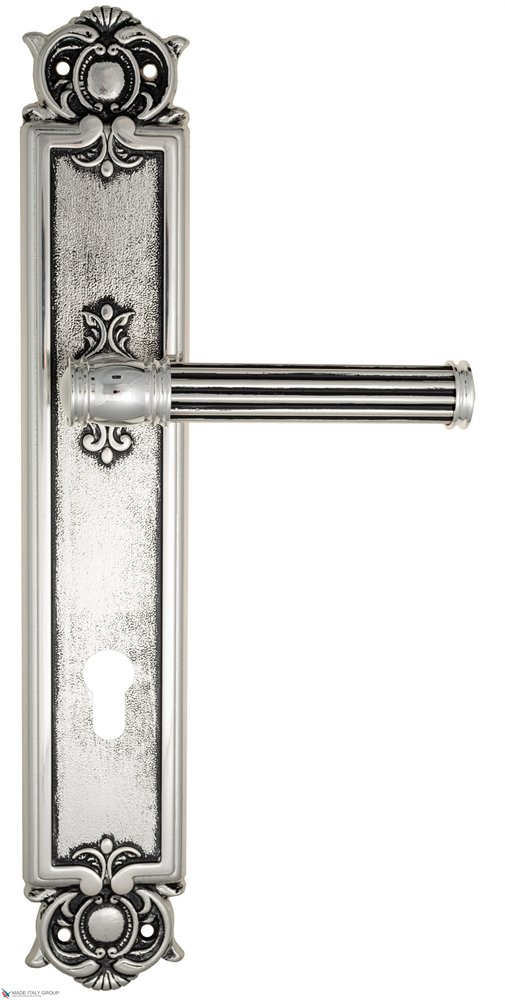 Дверная ручка Venezia IMPERO CYL на планке PL97 натуральное серебро + черный