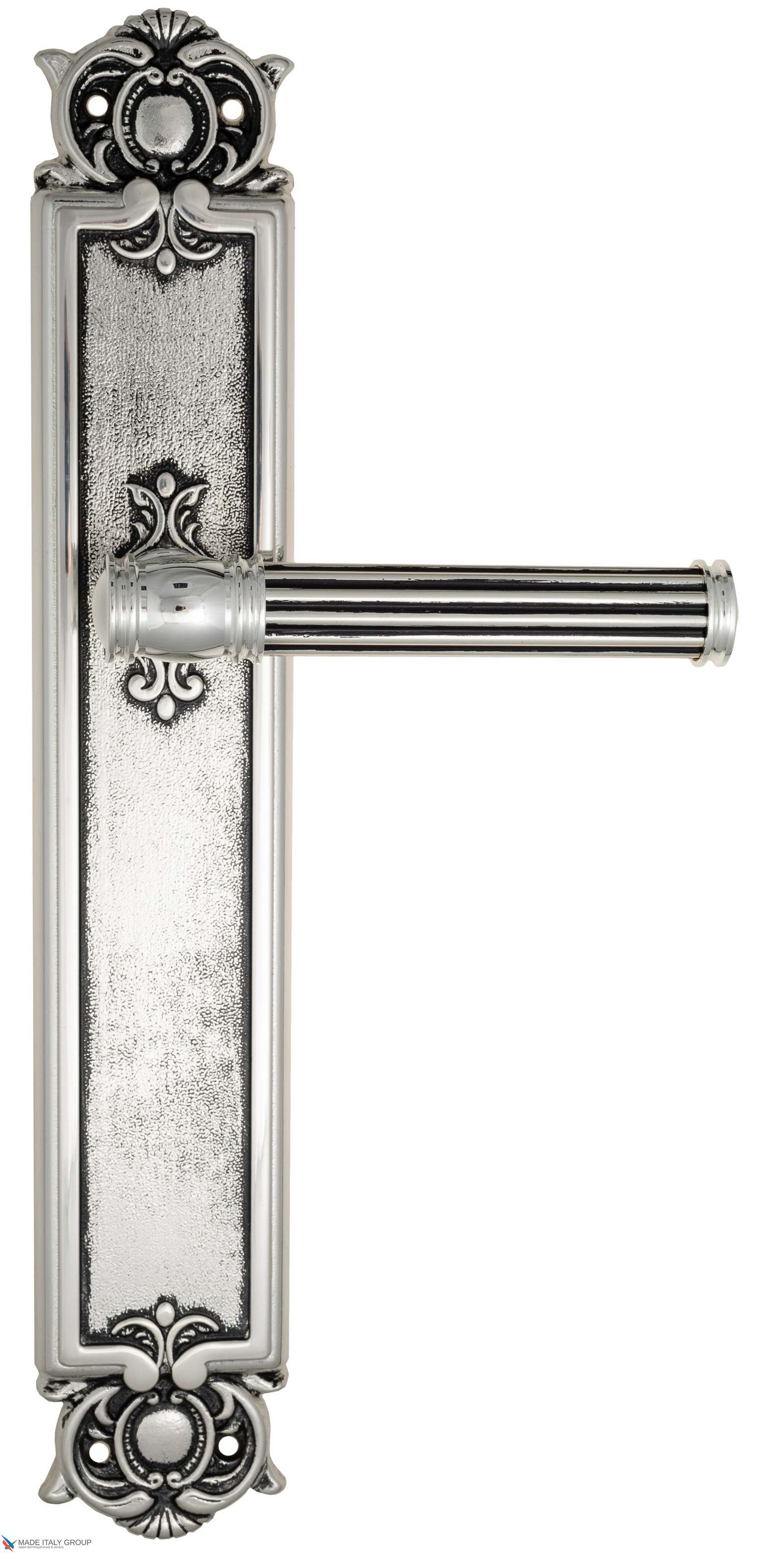 Дверная ручка Venezia IMPERO на планке PL97 натуральное серебро + черный