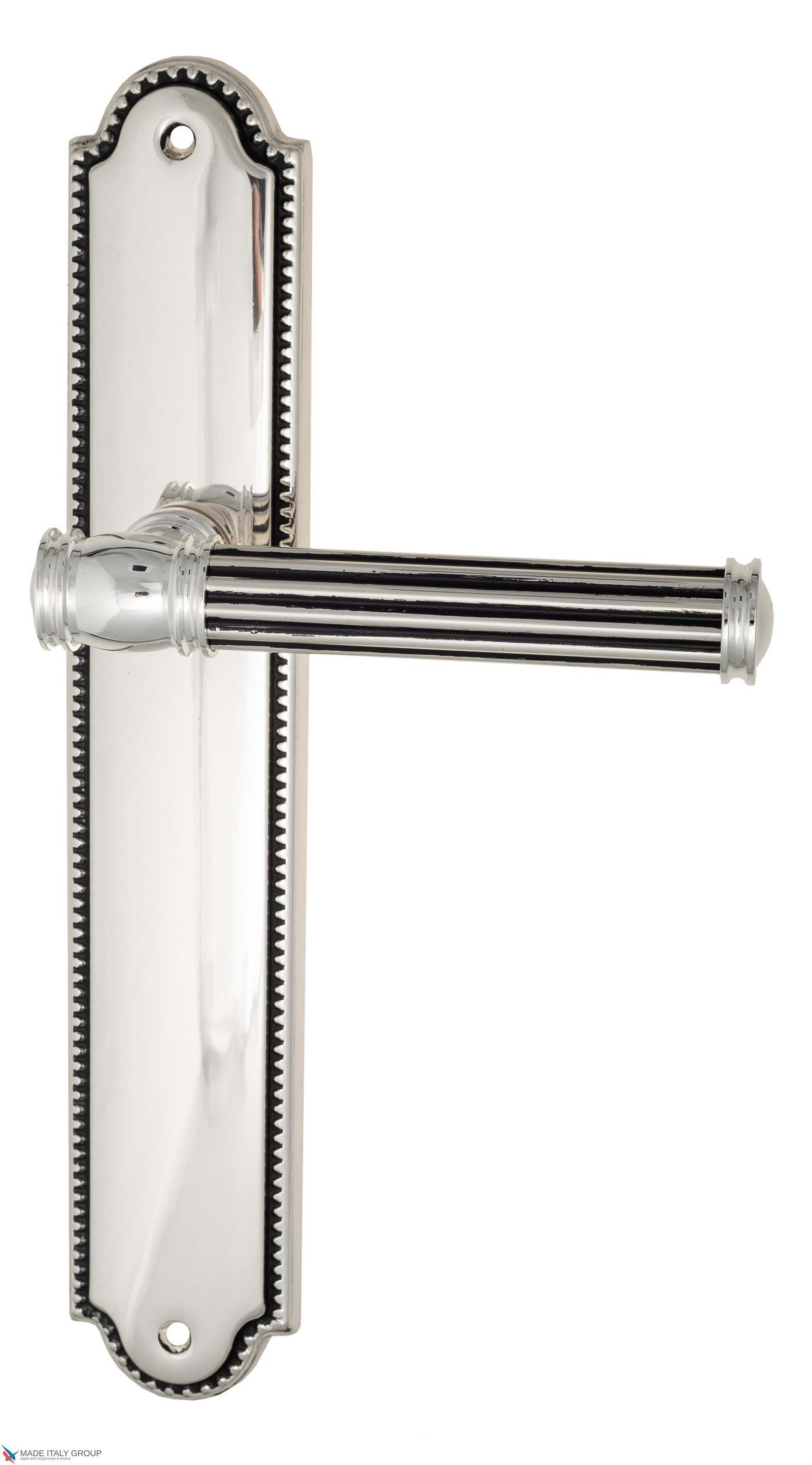 Дверная ручка Venezia IMPERO на планке PL98 натуральное серебро + черный