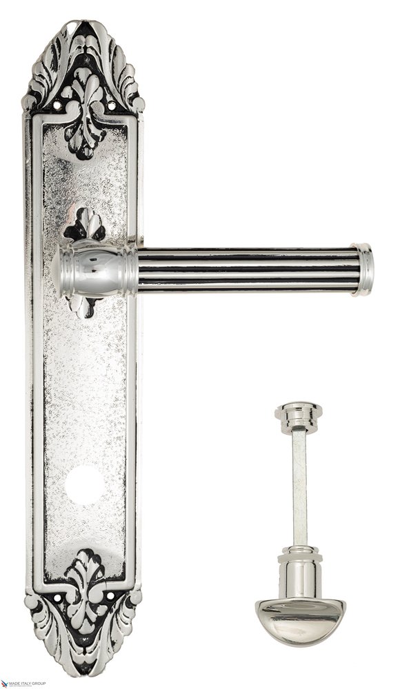 Дверная ручка Venezia IMPERO WC-2 на планке PL90 натуральное серебро + черный