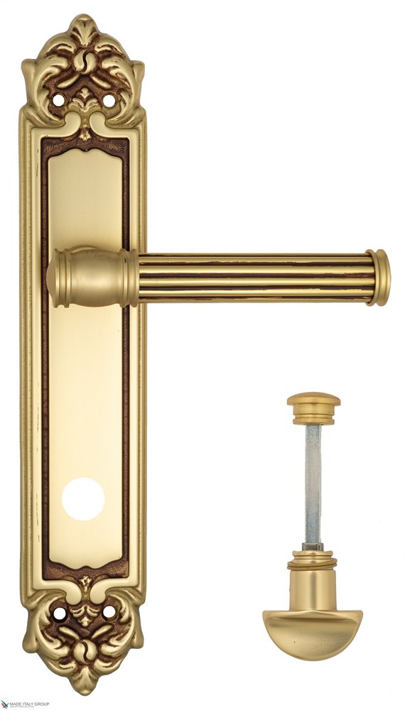 Дверная ручка Venezia IMPERO WC-2 на планке PL96 французcкое золото + коричневый