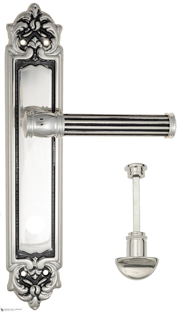 Дверная ручка Venezia IMPERO WC-2 на планке PL96 натуральное серебро + черный