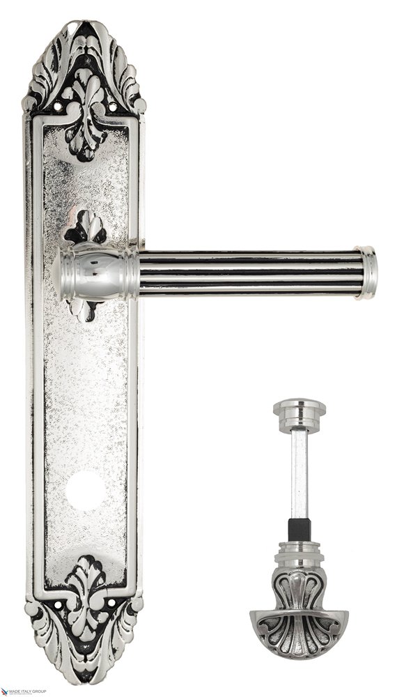Дверная ручка Venezia IMPERO WC-4 на планке PL90 натуральное серебро + черный