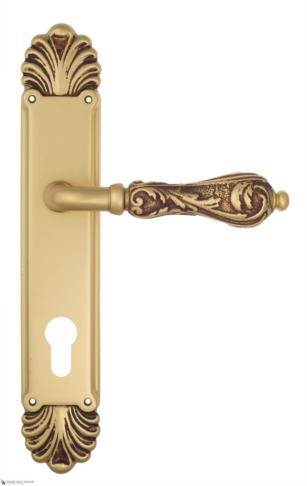 Дверная ручка Venezia MONTE CRISTO CYL на планке PL87 французское золото + коричневый