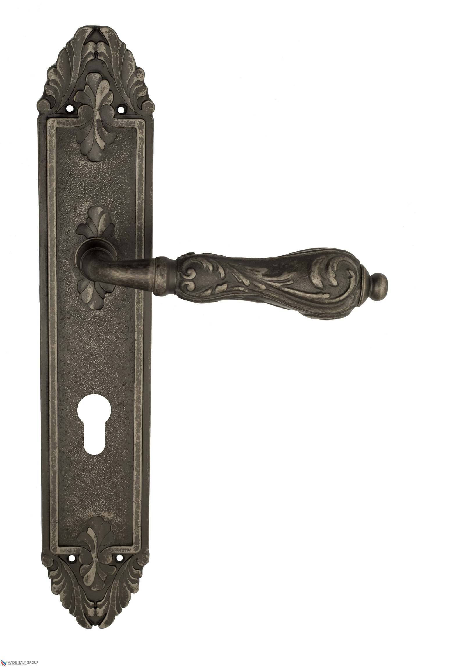 Дверная ручка Venezia MONTE CRISTO CYL на планке PL90 античное серебро