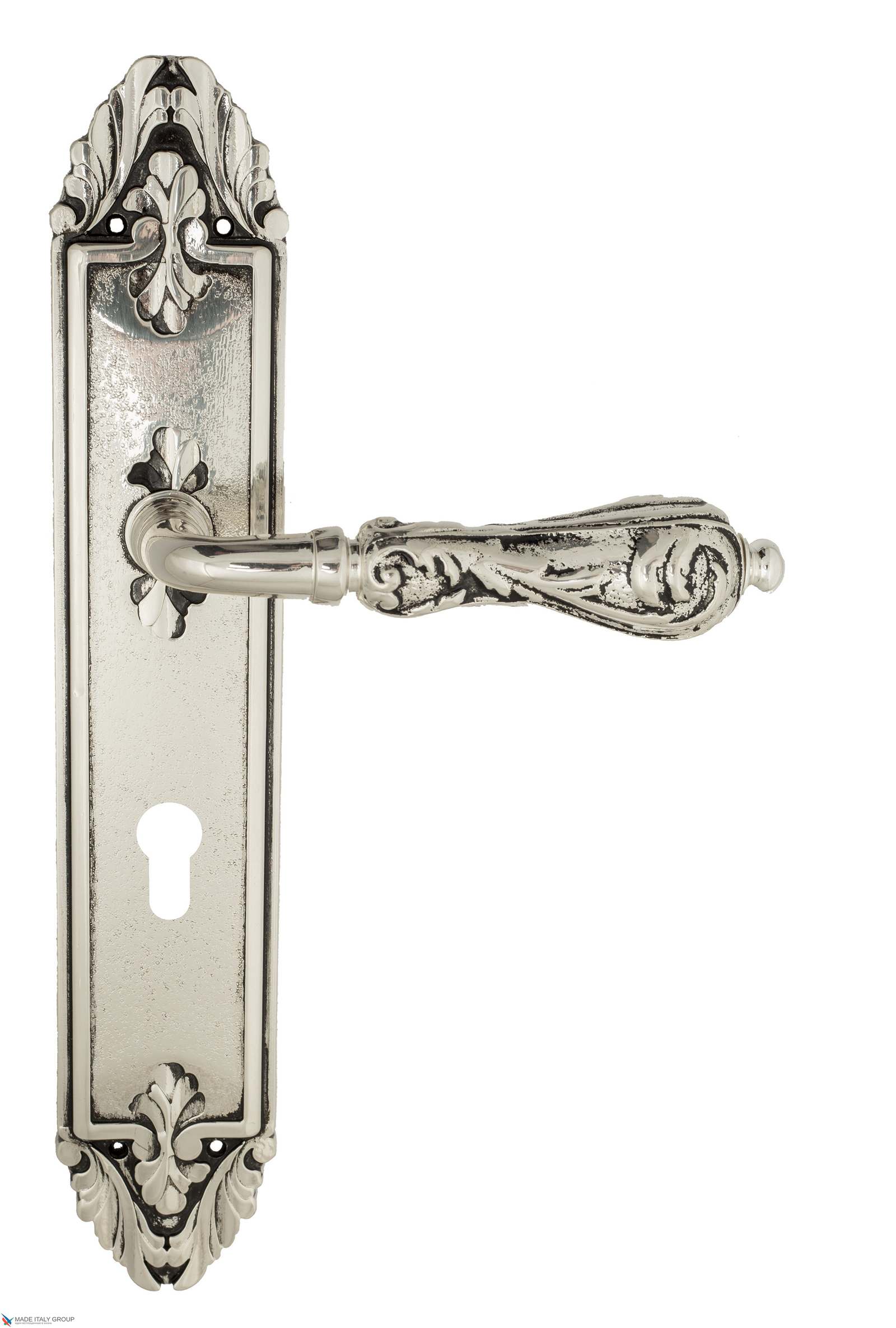 Дверная ручка Venezia MONTE CRISTO CYL на планке PL90 натуральное серебро + черный