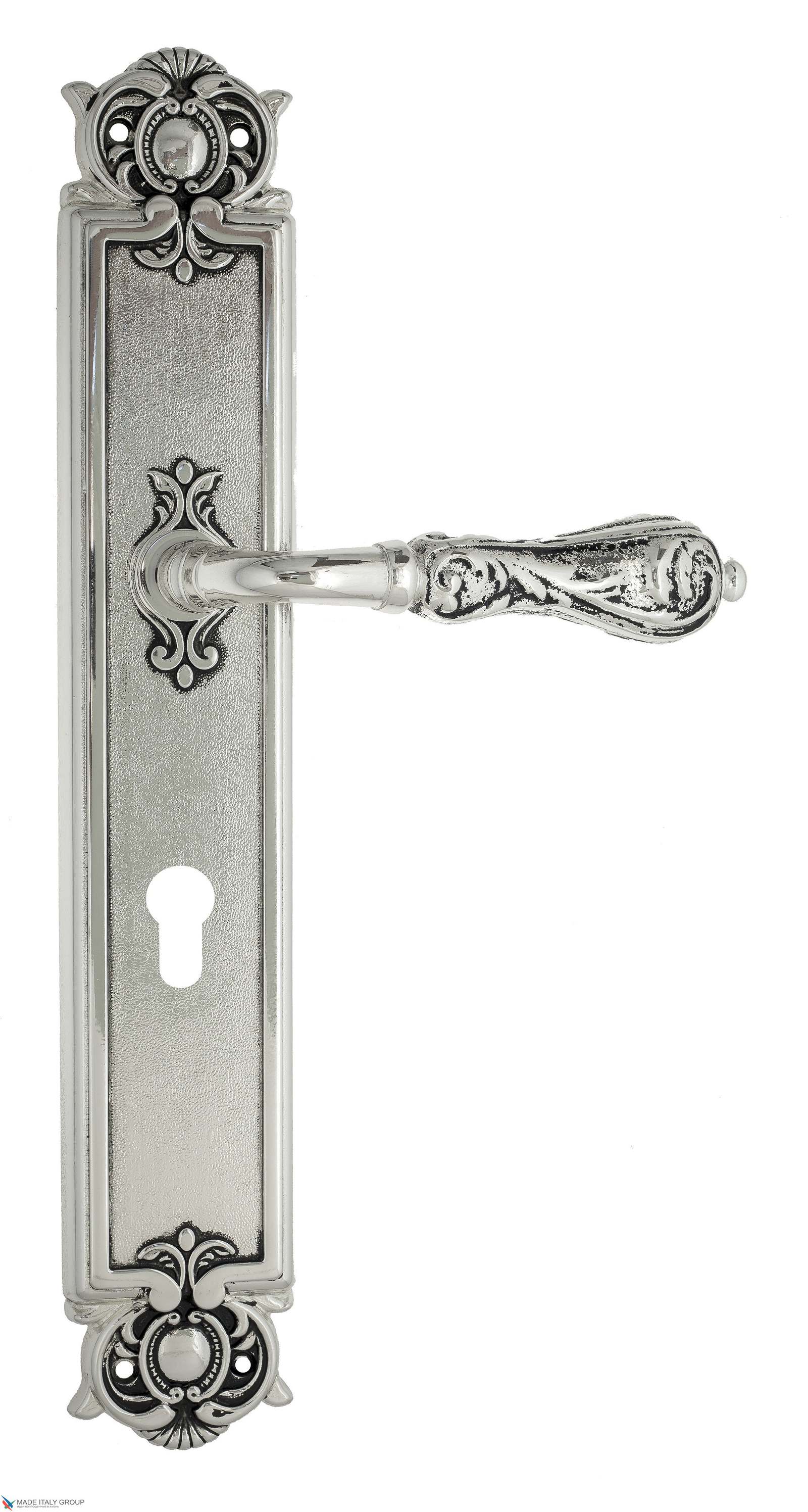 Дверная ручка Venezia MONTE CRISTO CYL на планке PL97 натуральное серебро + черный