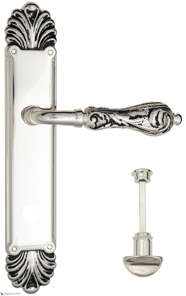 Дверная ручка Venezia MONTE CRISTO WC-2 на планке PL87 натуральное серебро + черный