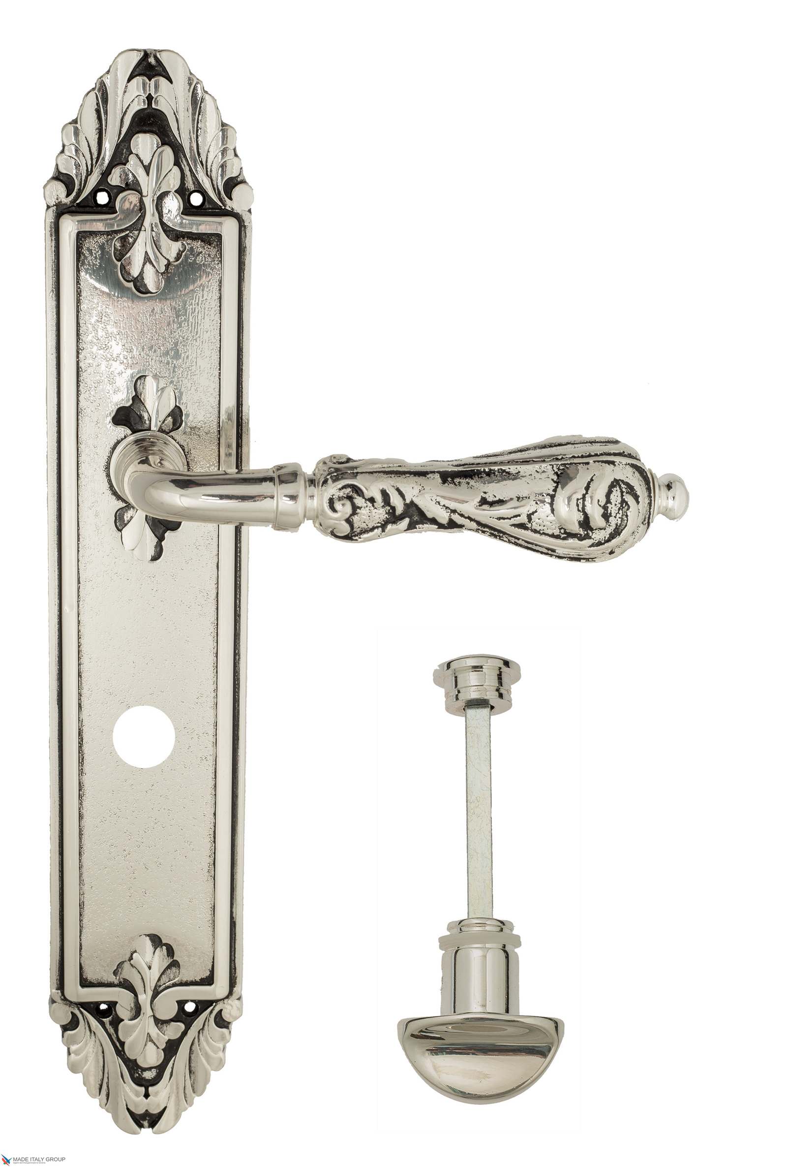 Дверная ручка Venezia MONTE CRISTO WC-2 на планке PL90 натуральное серебро + черный
