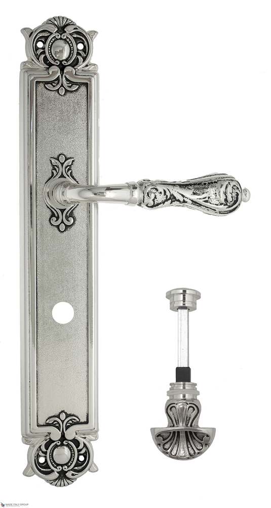 Дверная ручка Venezia MONTE CRISTO WC-4 на планке PL97 натуральное серебро + черный