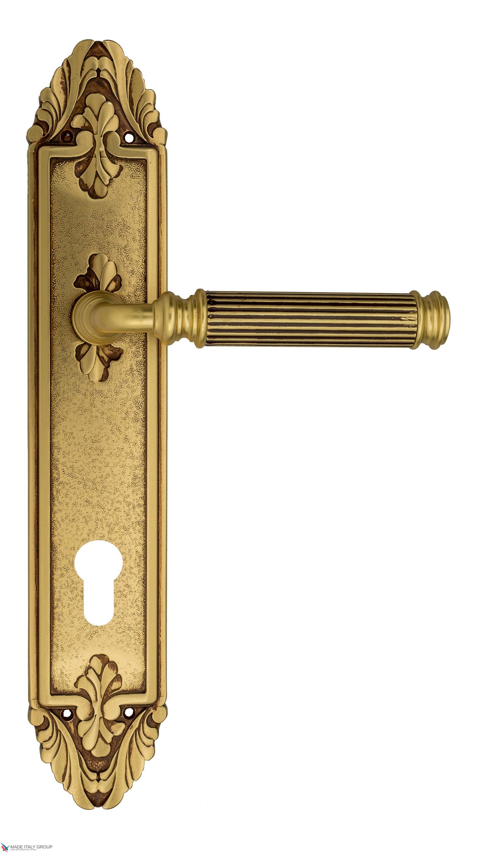 Дверная ручка Venezia MOSCA CYL на планке PL90 французское золото + коричневый